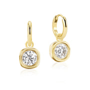 A little pillow of gold, now in motion. Inspired by our signature Kissen ring, these huggies take the signature Kissen bezel—soft, pillowy, sculptural—and reimagine it as a diamond charm suspended from a sleek gold hoop. Each diamond is framed in a cushion of rich gold. They're understated, but full of presence. Designed for daily wear, they’re easy, comfortable, and quietly indulgent.