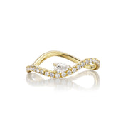Inspired by soft natural lines and complementary curves, the Meander Ring features a 0.15 carat pear shaped white diamond. Worn solo or as a nesting set with any of the other bands in the Meander series, these dreamy diamonds seemingly float on your finger against a delicate near invisible gold setting.