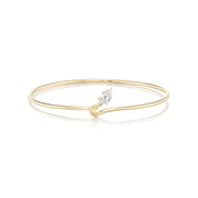 The Boa Bracelet is an upgrade for your staple delicate gold bangle. This sleek wire bangle wraps gracefully around your wrist, secured by a pear shaped diamond. When worn with the Rattlesnake Bracelet, the pair evokes a Boa’s head and tail wrapping around your wrist.