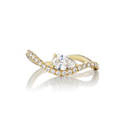 Inspired by soft natural lines and complementary curves, the Meander Ring features a 0.40 carat pear shaped white diamond. Worn solo or as a nesting set with any of the other bands in the Meander series, these dreamy diamonds seemingly float on your finger against a delicate near invisible gold setting.